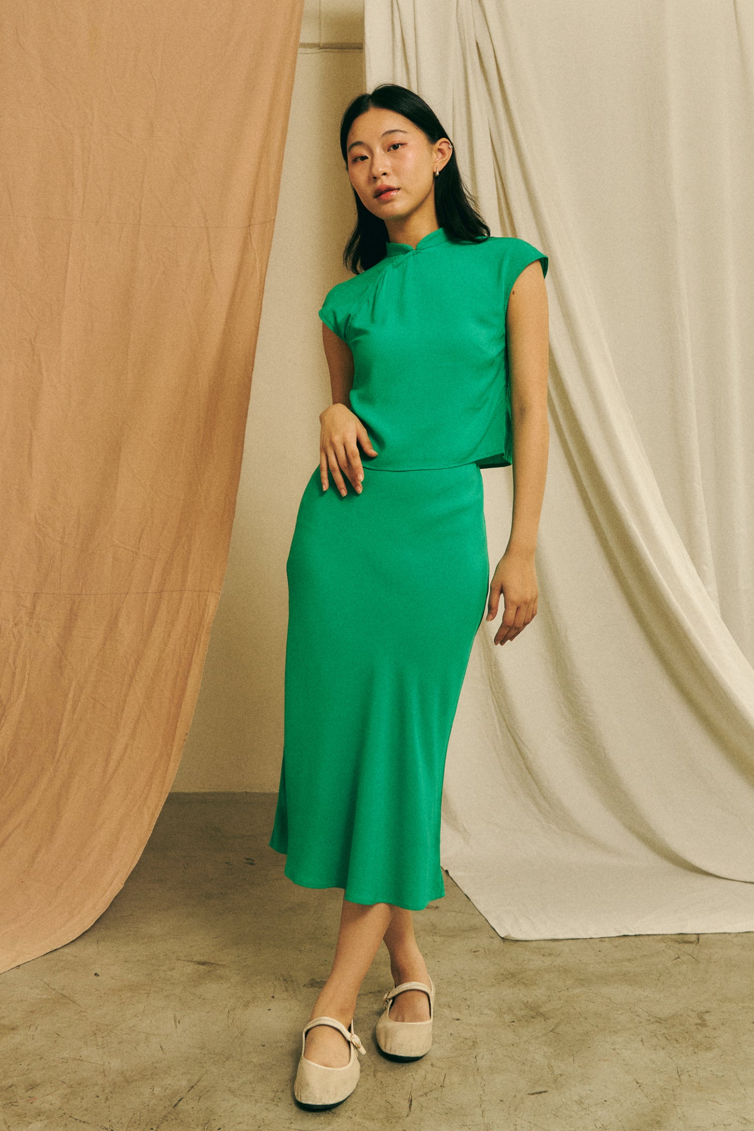 This bestselling bias cut skirt is a crowd pleaser - easy to wear and hugs curves in all the right places. Match it with our Big Sister Cheongsam Top or Puff Sleeve Top. Inspired by Big Sister - easygoing, relaxed and diligent.