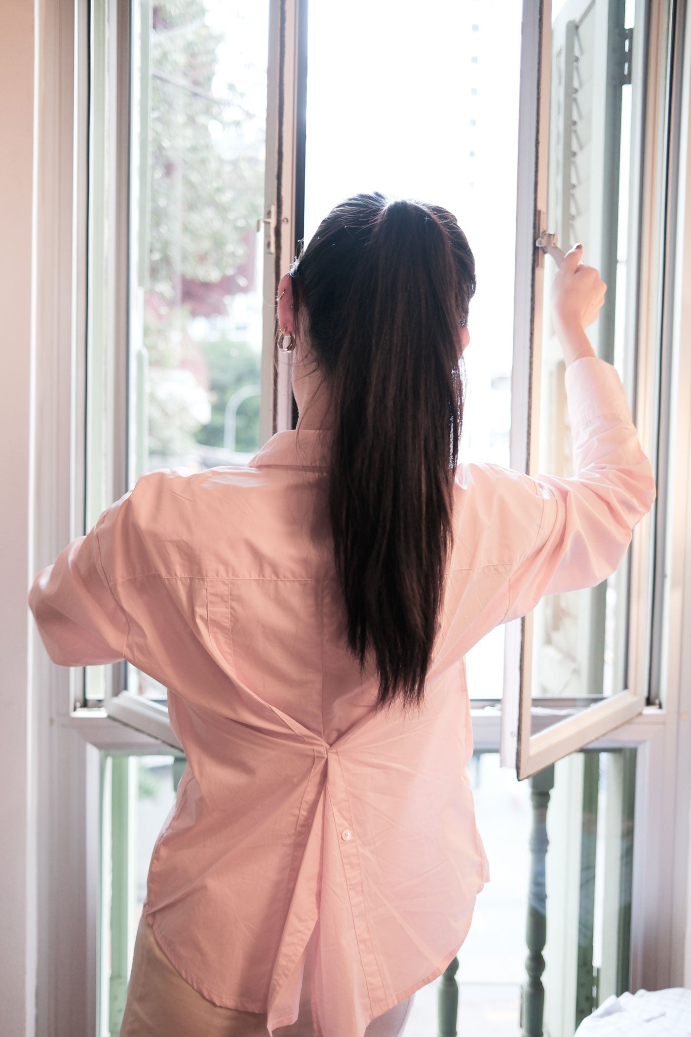 The Core Shirt is Dear Samfu's bestselling shirt, inspired by those countless days of peeking into dad's closet full of oversized shirts. Slightly oversized and made of a lightweight cotton poplin fabric, give it a slightly cinched-in look by buttoning up at the back. We love to unbutton the cuffs and style it casually with core skirt, or core trousers.
