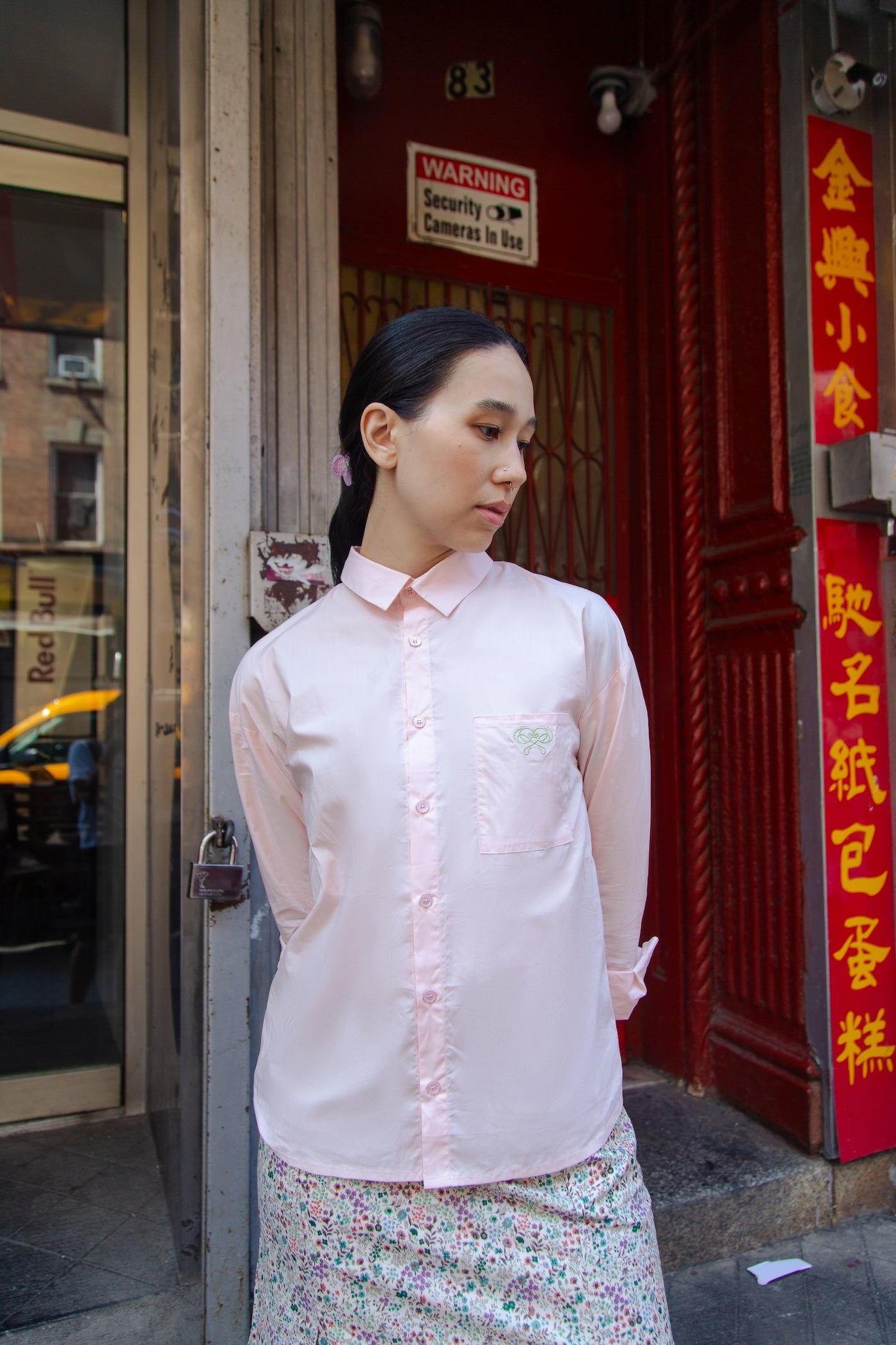 - Chest pocket with embroidered Dear Samfu motif
