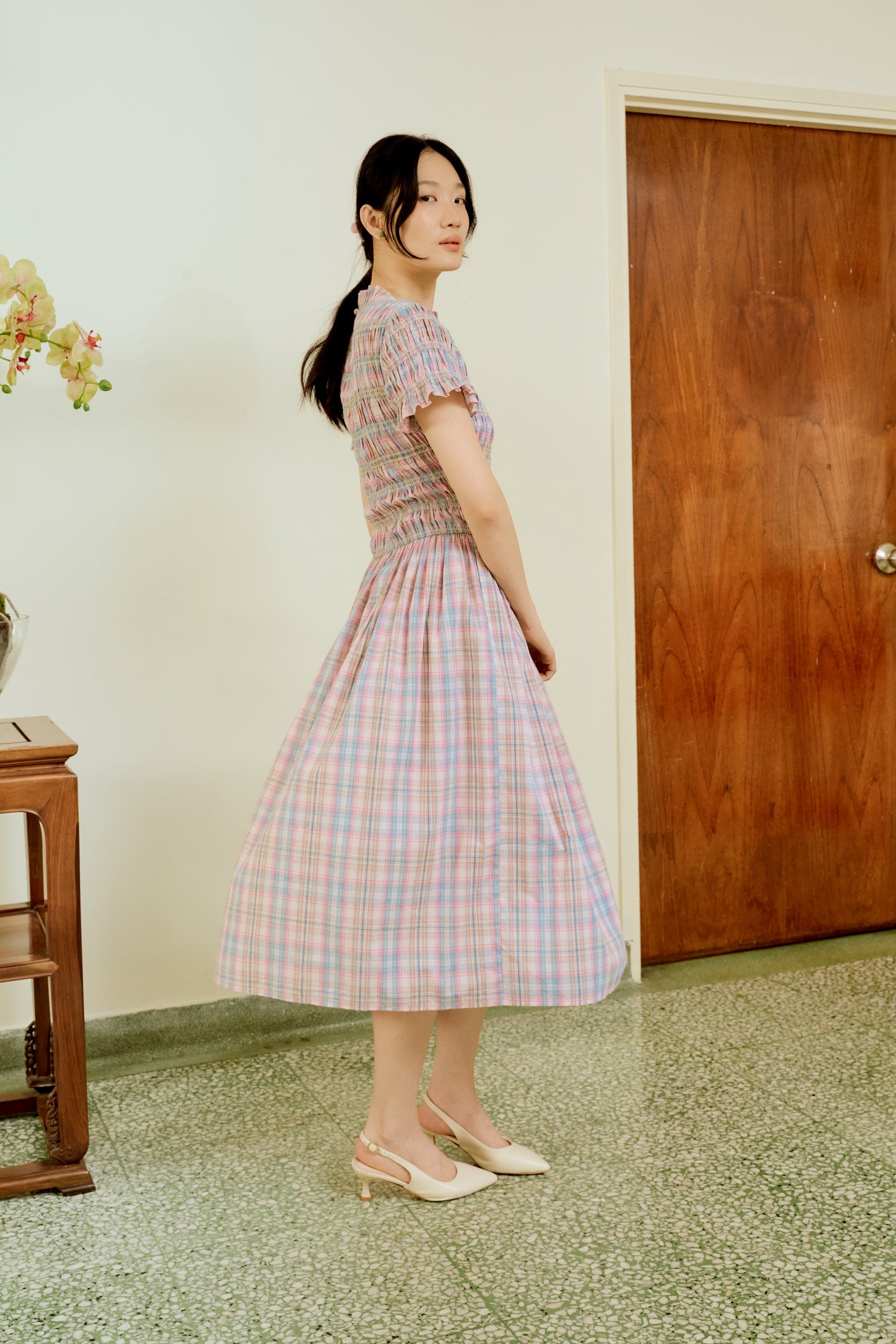 Gather Dress - as it is named- is inspired by our favorite gatherings - always warm like a hug with her flexible and comfy fit across the bust, waist and sleeves with ruching detail across the bodice through the front and back. Adorned with a slightly dropped waist, full flare skirt and natural pearl button closure at the back.