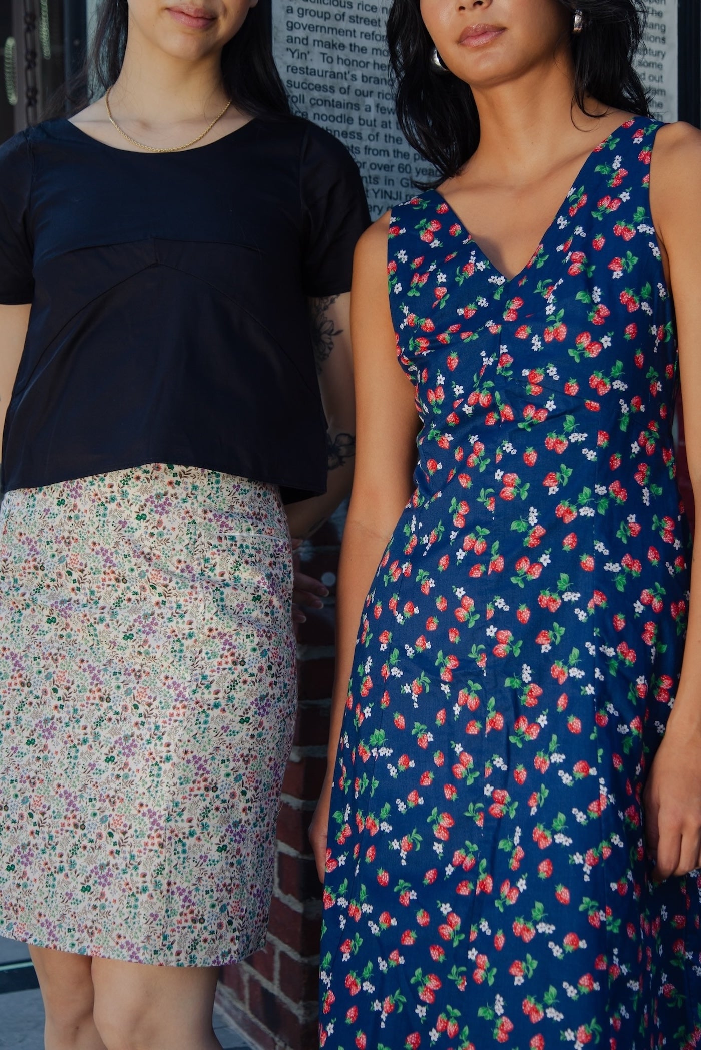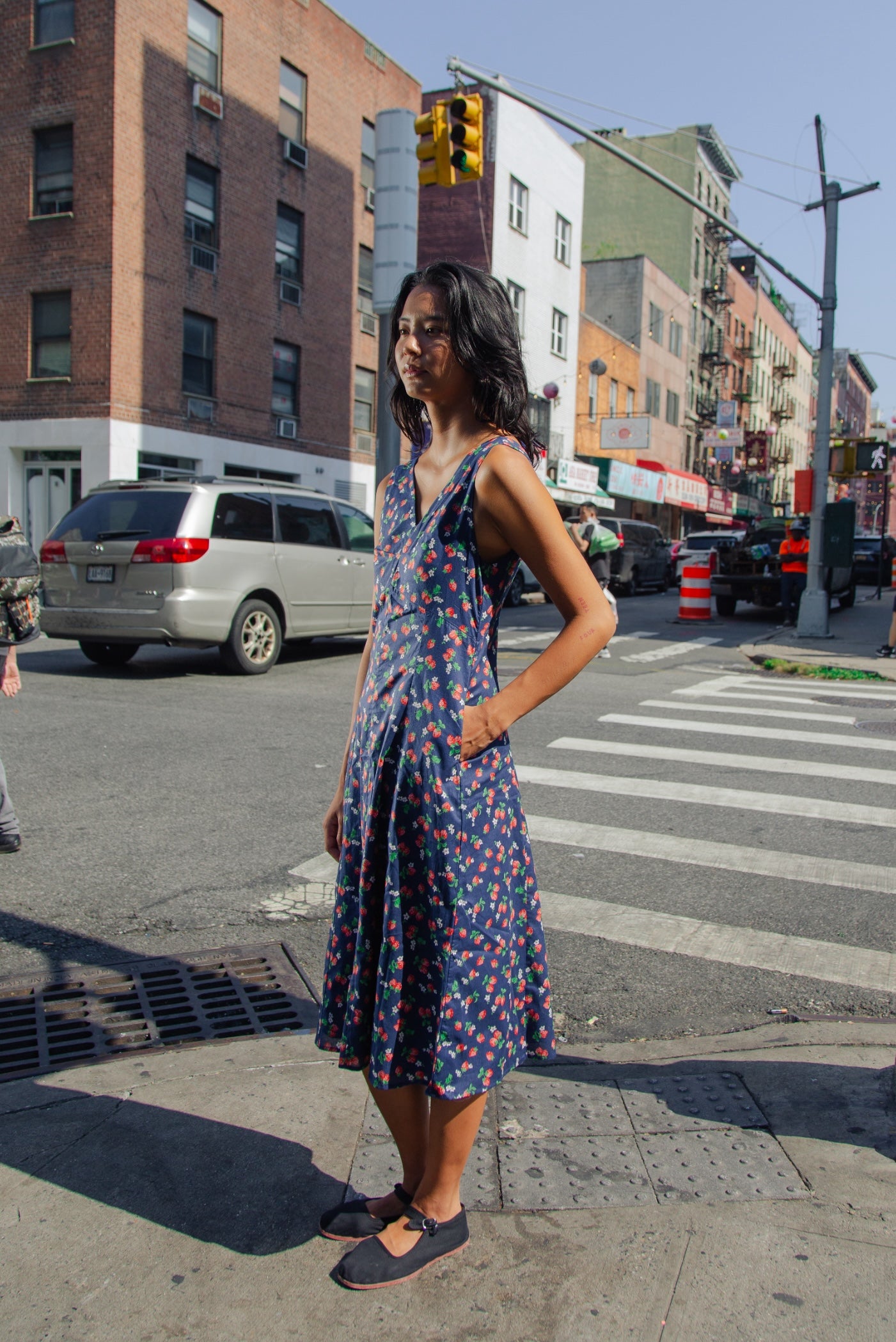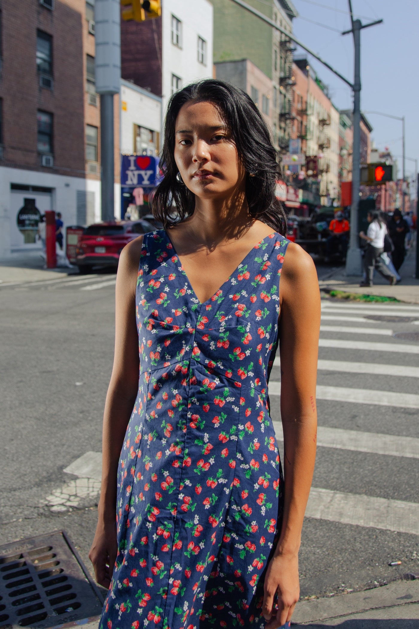 The Muse Dress is a vintage-inspired v-neck dress for the one who loves to prance and share her big heart of love with others. Crafted in a premium Japanese strawberry print cotton, we love its simple and unique seam lines that flatter and cover at just the right places. Wear it on its own or layer with the Core Shirt for that extra chic.